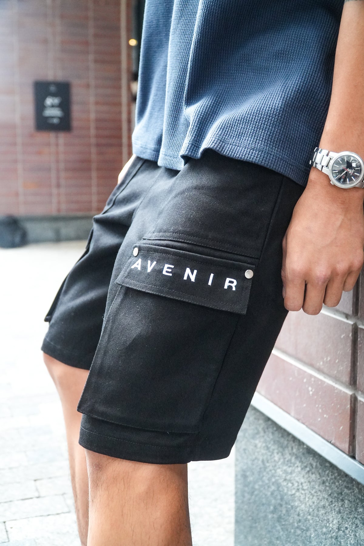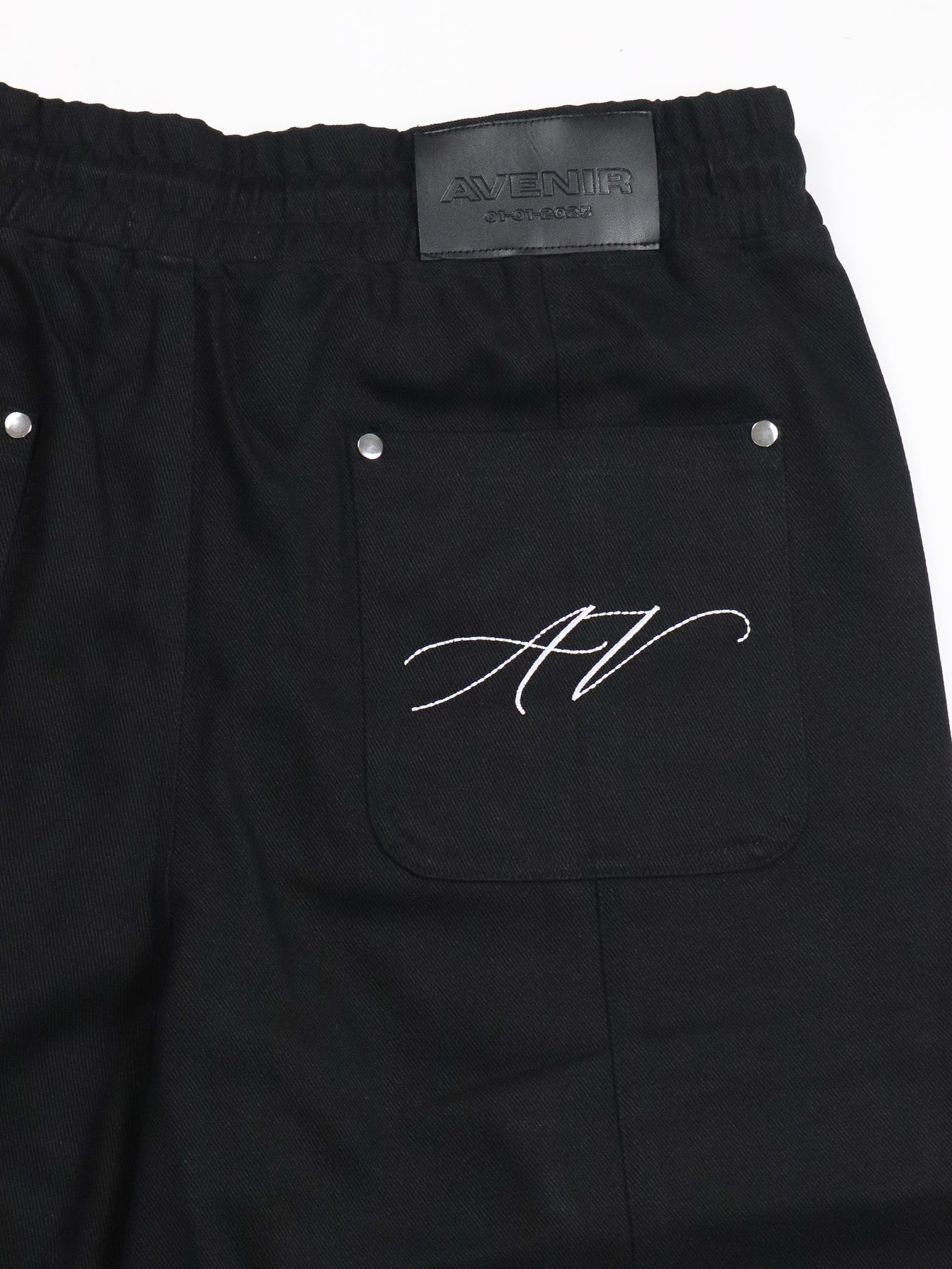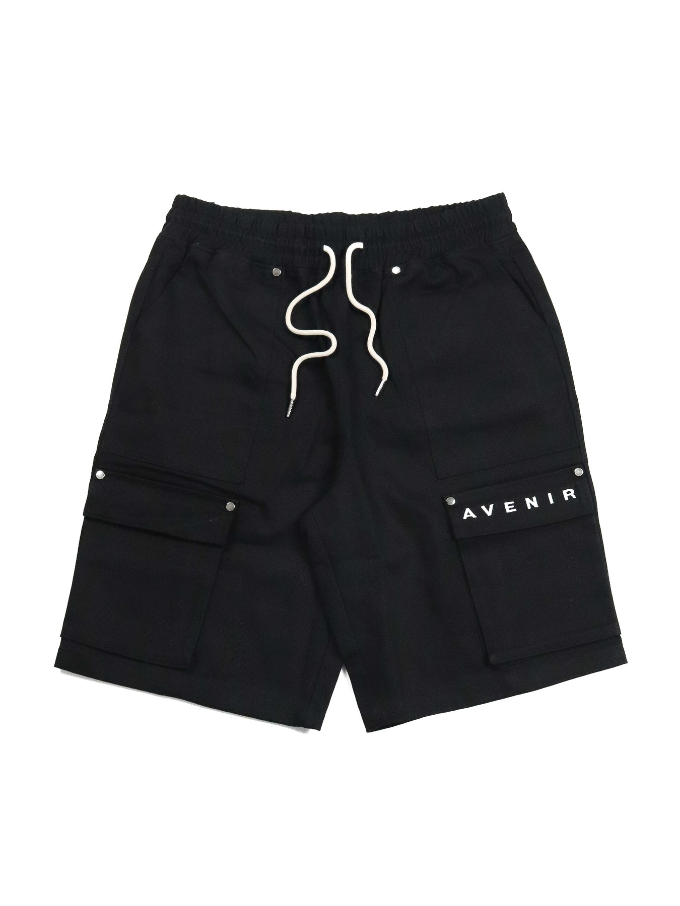 Designed with precision, the relaxed silhouette is balanced by clean lines and functional detailing including oversized cargo pockets secured with matte metal snaps. The AVENIR signature branding is subtly placed, a nod to understated confidence. A tonal elastic waistband with elongated drawstrings completes the look with a tailored, adjustable fit.